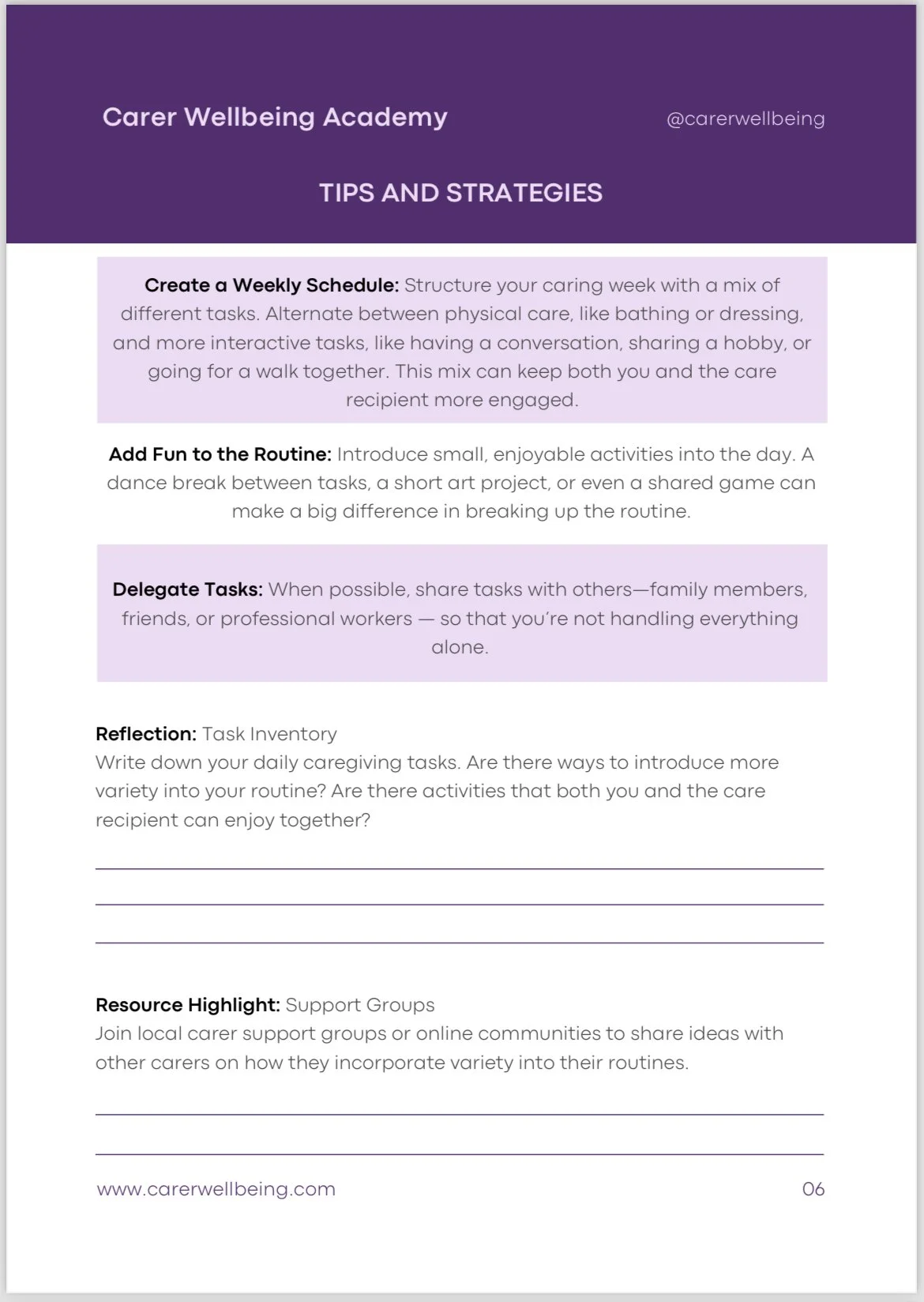 * Practical tips on how to incorporate job design principles into your caregiving routine.